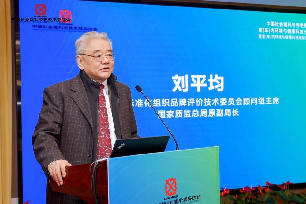 会议第一部分为中国社会福利与养老服务协会室(车)内环境与健康科技分会成立大会,由中国社会福利与养老服务协会秘书长谭刚主持。国际标准化组织品牌评价技术委员会顾问组主席、国家质监总局原副局长刘平均出席并发表致辞。刘局长指出,室(车)内环境健康是老年人生活品质的核心保障,分会的成立恰逢其时,既要以标准化引领产业规范发展,也要以品牌建设提升行业核心竞争力,为银发经济高质量发展注入标准化动能。